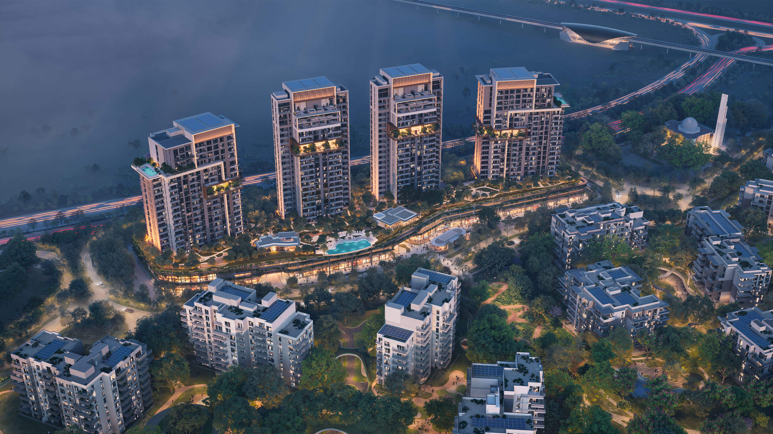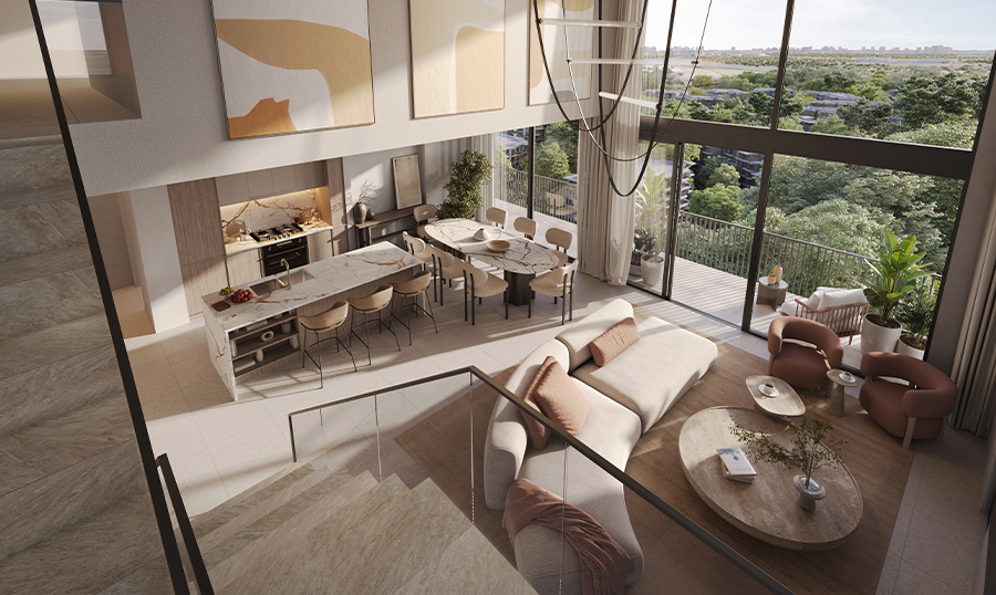 Distrikt Ghaf Woods by Majid Al Futtaim introduces a pioneering vertical forest concept, offering 1 to 3-bedroom apartments and spacious twin-level 3-bedroom duplexes. Distrikt Ghaf Woods Dubai elevated above a thriving forest, this unique community blends contemporary urban living with the calming presence of nature. Ghaf Woods Distrikt designed to support a regenerative lifestyle, its architecture harmonizes with the surrounding treetops. Ideally positioned with direct access to E311 and D54, residents enjoy close proximity to key destinations such as Palm Jumeirah, Dubai Marina and Mall of the Emirate, balancing city convenience with natural tranquility.